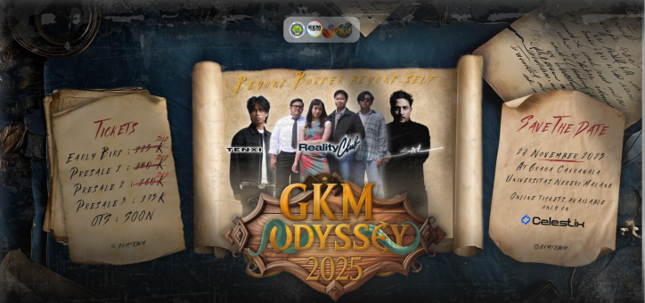 GKM ODYSSEY 2025 merupakan konser musik tahunan yang diselenggrakan oleh Badan Eksekutif Mahasiswa Fakultas Ekonomi dan Bisnis Universitas Negeri Malang dengan menampilkan Guest Star - Guest Star Ternama di Indonesia.